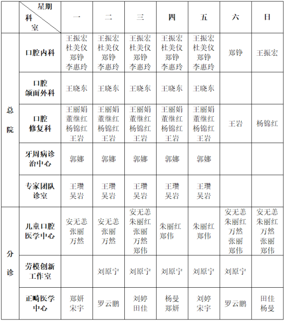 注:1、如因特殊情况排班表中医生不能出诊,以当天实际出诊医生为准。