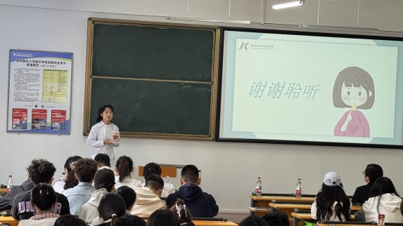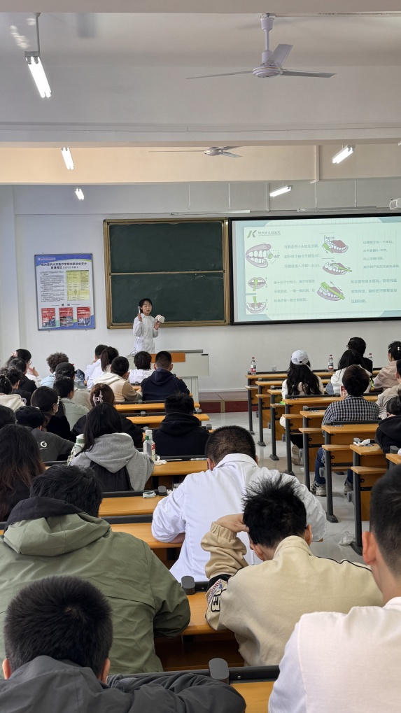 首先由正畸医学中心的刘婷医生,进行《大学生的健康微笑计划》的正畸科普讲座。刘婷医生把正畸知识化繁为简。课堂上,知识像看不见的溪流,在老师生动的讲述中,在学生认真的眼神中,在翻动的书页间静静流淌。