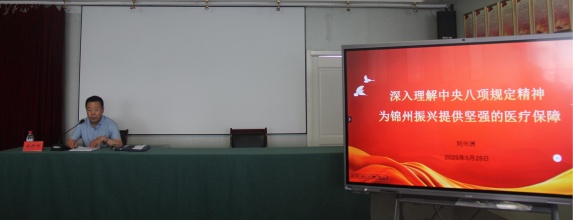 随后,刘兴洲组长以《深入理解中央八项规定精神为锦州振兴提供坚强的医疗保障》为题,为全院党员干部职工代表讲授专题党课。