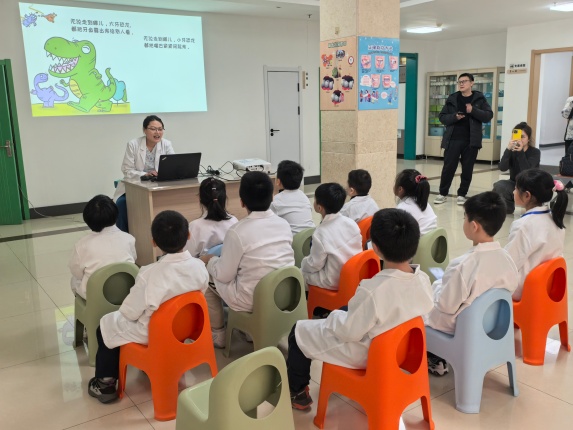 爱牙小课堂正式开讲了,医生阿姨从牙齿的功能作用,到护牙的重要常识,再到龋齿的预防知识,医护人员用讲故事、看动画的形式,将枯燥的知识变得浅显易懂。护士姐姐还拿出仿真牙齿模型与超大号教具牙刷,手把手示范巴氏刷牙法,从刷牙时长到清洁角度,一步步细致教学。孩子们跟着指令认真模仿,家长们也驻足聆听,纷纷点赞这种直观互动式教学,比日常说教更易让孩子接受、记牢。