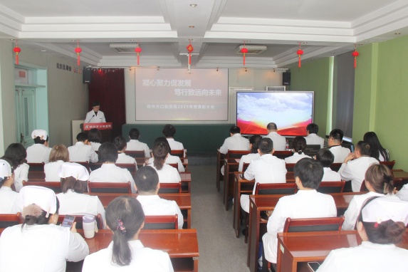 2月11日下午,锦州市口腔医院举行“凝心聚力促发展,笃行致远向未来”2025年度表彰大会。院领导班子、中层干部以及受表彰人员齐聚一堂,共话过往耕耘硕果,共赴未来发展新程。副院长商英楠主持会议。
